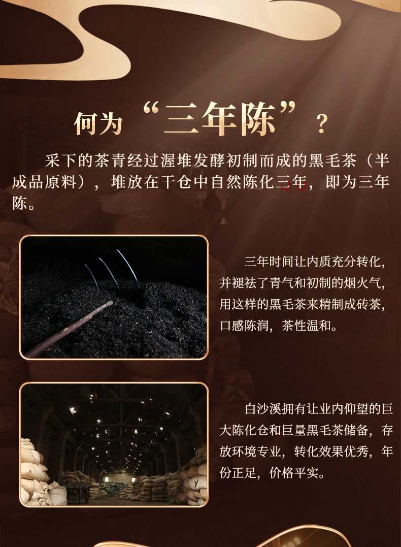 湖南安化黑茶白沙溪金花獲磚茶手工茶特產(chǎn)禮品茶三年陳天獲茶1kg