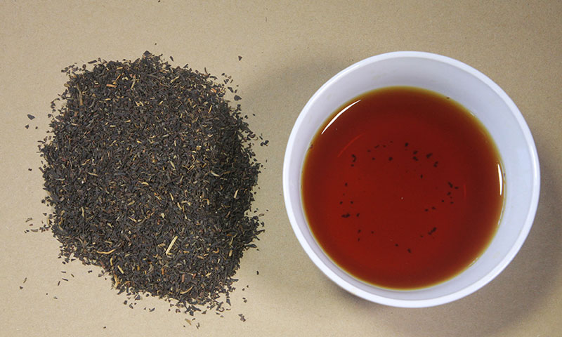 紅碎茶:短條狀緊實,顯金毫,湯色紅亮,滋味濃強鮮爽。