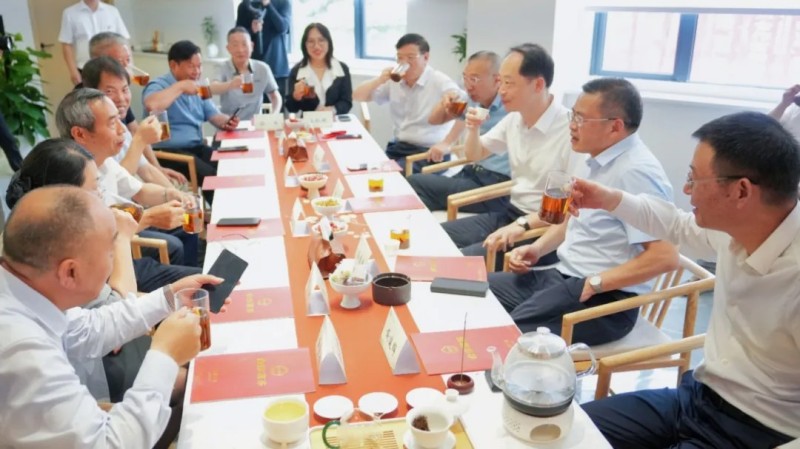 活動最后,與會領(lǐng)導(dǎo)、嘉賓共同參與合作茗茶品鑒會及茶藝表演,專業(yè)茶藝師現(xiàn)場沖泡聯(lián)名新品,為大家展示了從備器、溫杯、投茶到?jīng)_泡、分茶的完整流程,聯(lián)名新品滋味醇厚飽滿、帶有自然花果香,嘉賓們細(xì)啜慢飲,沉浸式感受聯(lián)名新品的獨(dú)特魅力,紛紛對茶葉的品質(zhì)與口感贊不絕口。