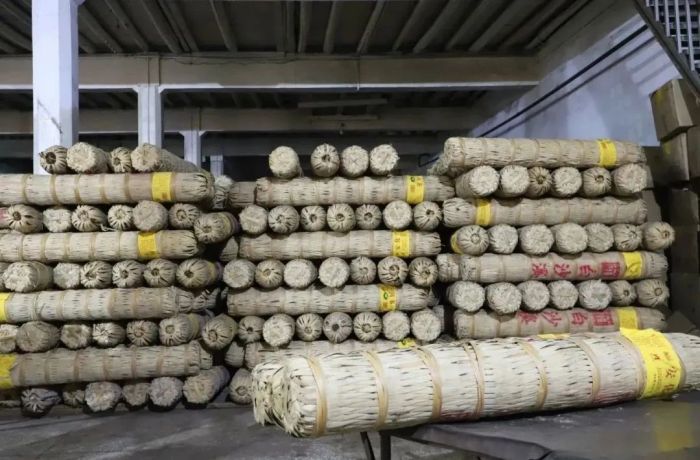 前兩批出倉的千兩茶大部分為往年定購產(chǎn)品,一直集中存放于白沙溪的標(biāo)準(zhǔn)茶倉;而近日運(yùn)往北京的這批千兩茶則是客戶去年和今年分兩批定購的千兩茶,像這樣5000支千兩茶一次出倉實(shí)為罕見,景象非常壯觀。